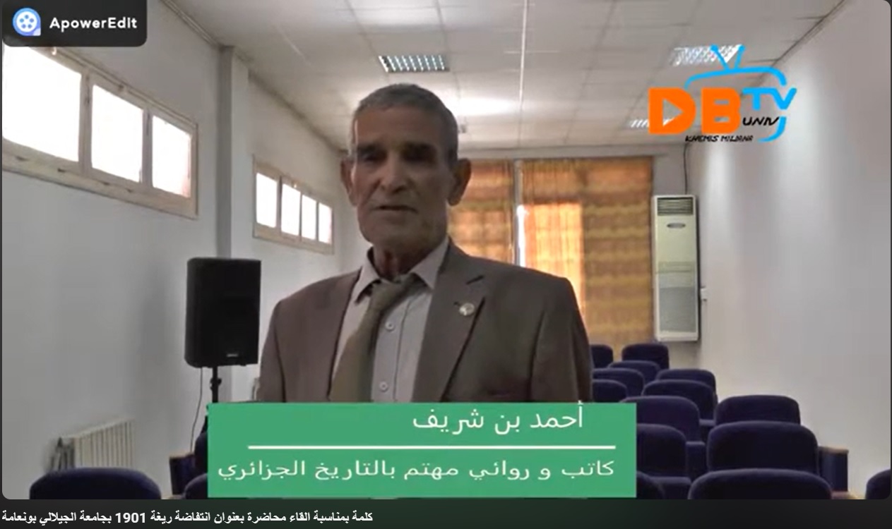0 كلمة بمناسبة القاء محاضرة بعنوان انتفاضة ريغة 1901 بجامعة الجيلالي بونعامة 19 décembre 2023 by aibeche · Published 19 décembre 2023