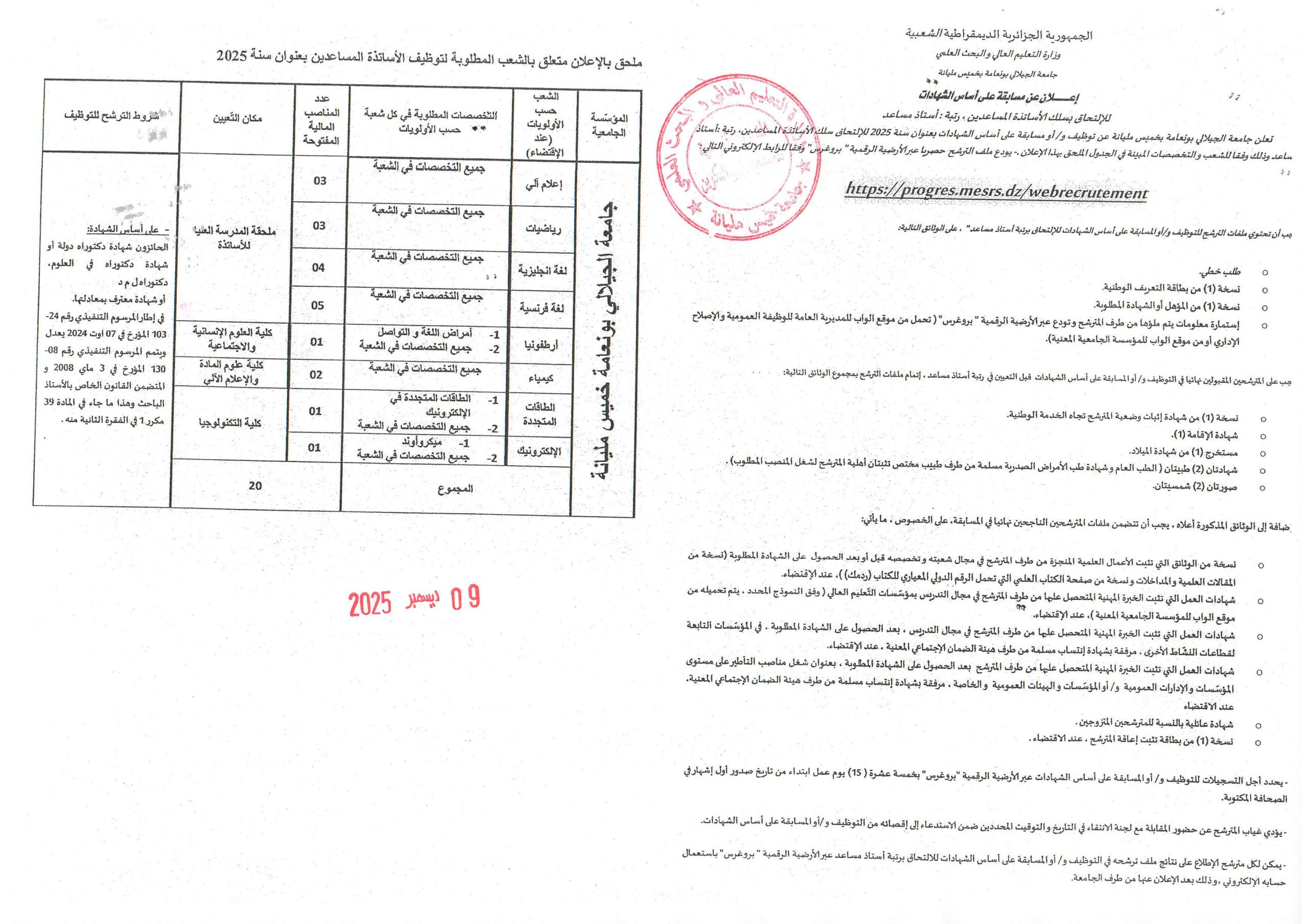 اعلان عن منح مؤقت لإستشارة رقم 2025/026