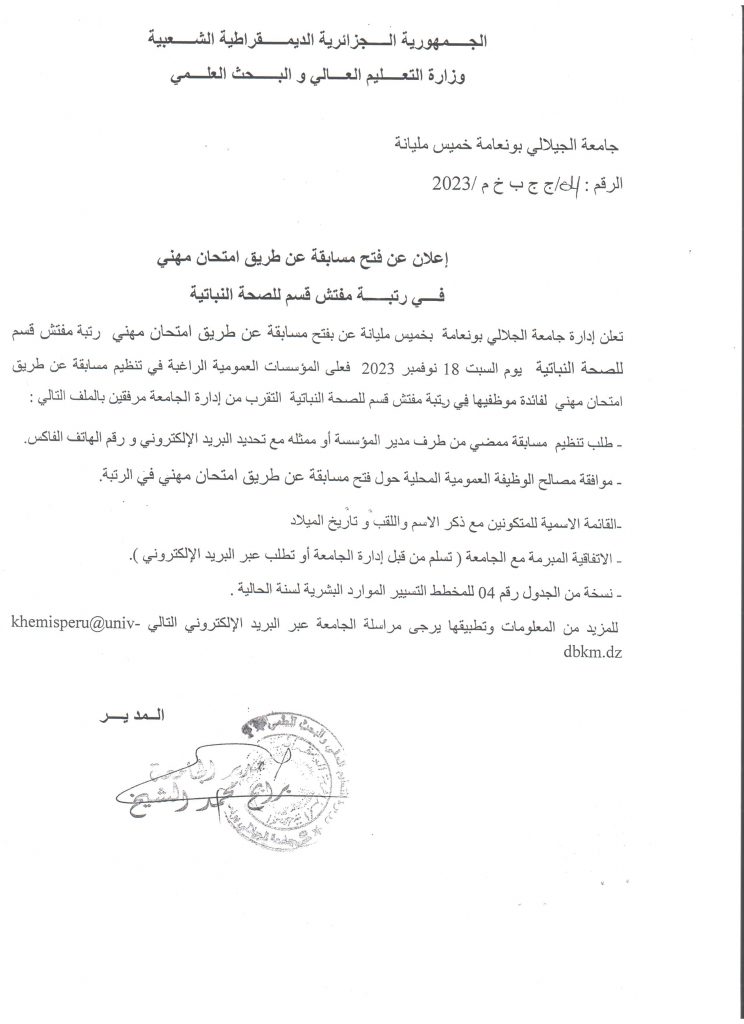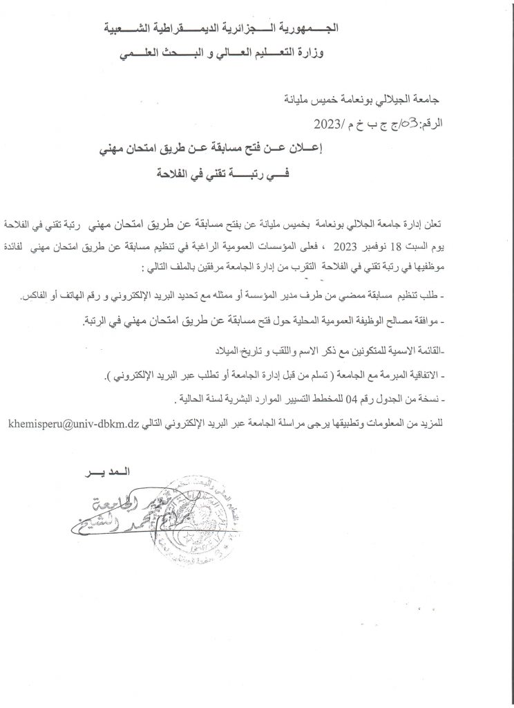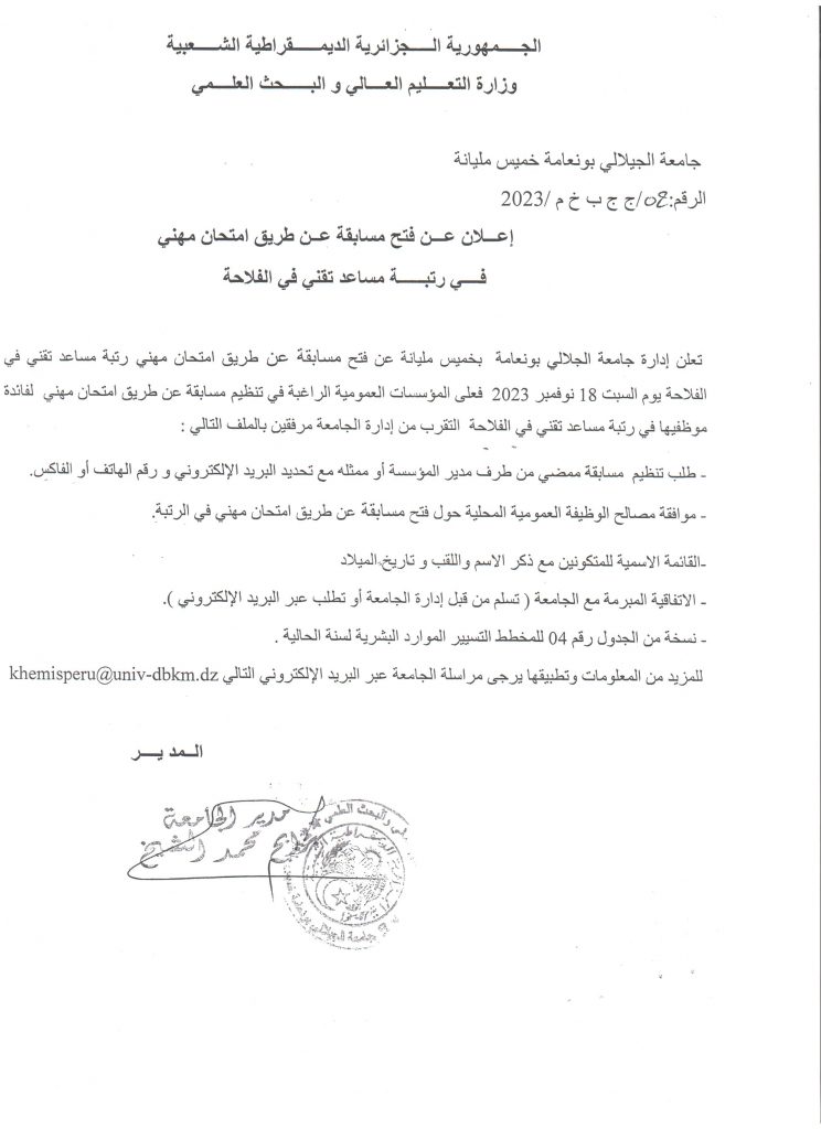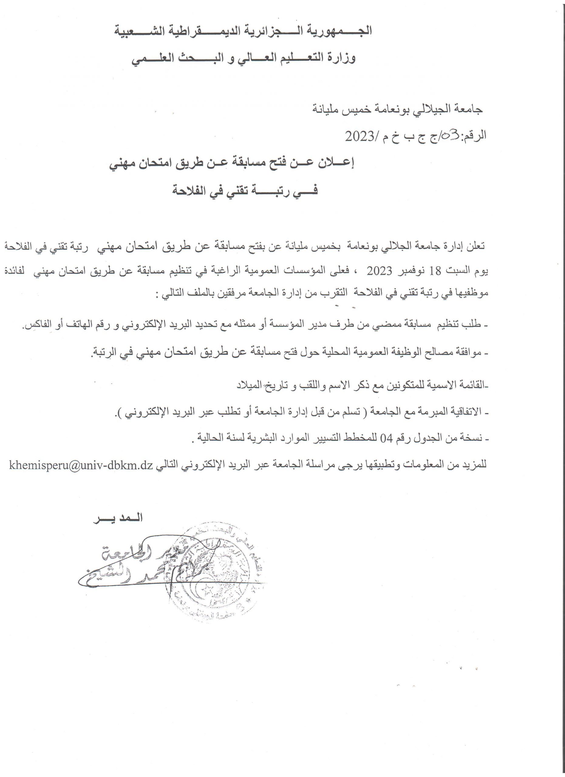 إعلان عن فتح مسابقة عن طريق إمتحان مهني